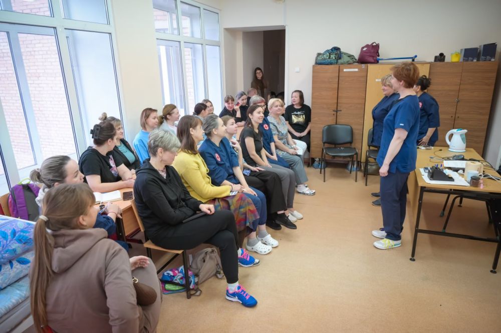 «При помощи гранта мы смогли привлечь таких интересных преподавателей, которые обучали и психологии, и тактической медицине, и учат сейчас навыкам ухода. И, конечно, мы благодарим нашего главного врача Олега Дмитриева за то, что нам предоставляют учебный класс, где сейчас проходят очные занятия», — говорит Елена Панасенко.