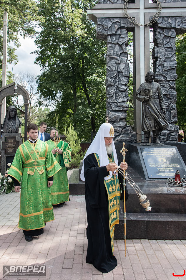 На открытии памятника священнику и учёному Павлу Флоренскому 18 июля провёл молебен патриарх Кирилл