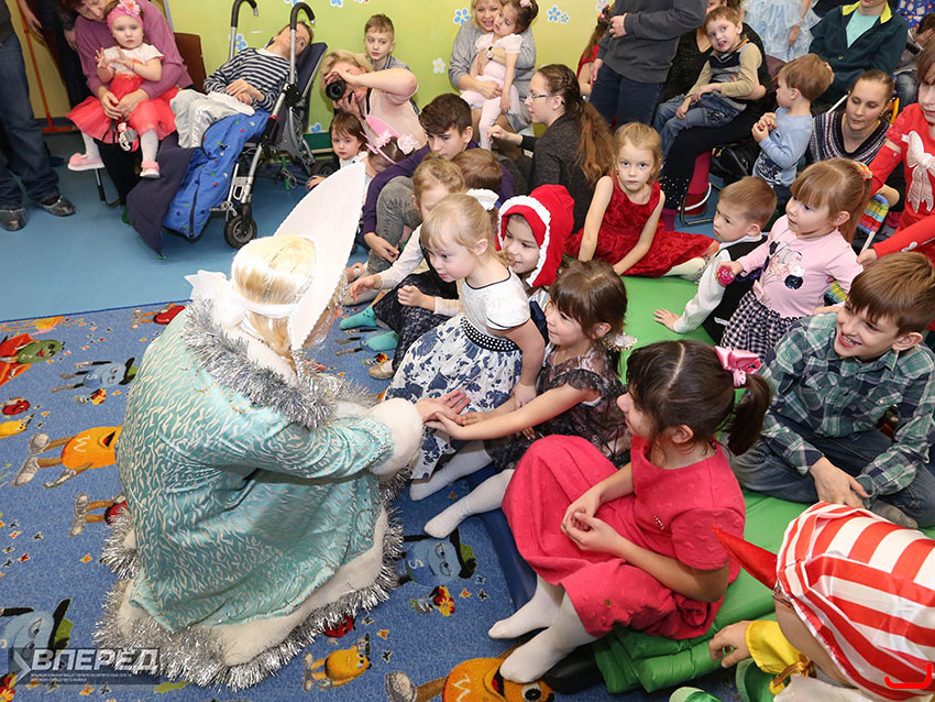 29 декабря «Вперёд» провела акцию «Добрая газета», во время которой сотрудники редакции в образе Деда Мороза и Снегурочки посещают героев наших публикаций — детей, имеющих проблемы со здоровьем — и дарят им подарки.