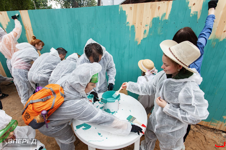 В рамках фестиваля «Том Сойер» 13 июля на Вифанской улице красили старый дом.
