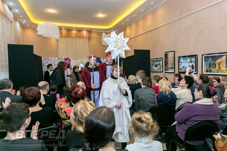 Друзья собрались в зале библиотеки им. Розанова, где студийцы показали рождественский спектакль