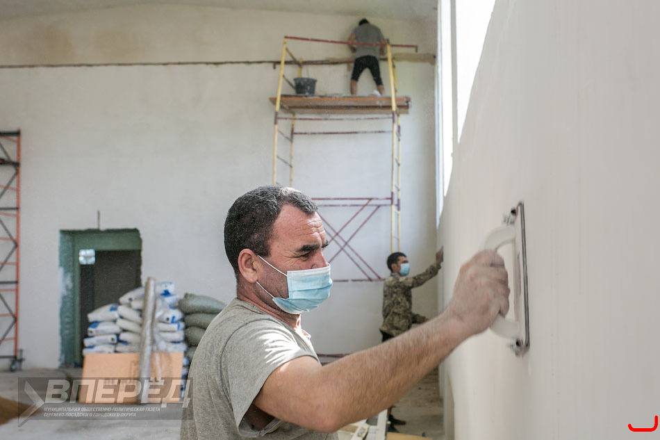 Посмотреть, как ведутся работы, на объект приехали глава округа Михаил Токарев и начальник управления образования Ольга Дударева.