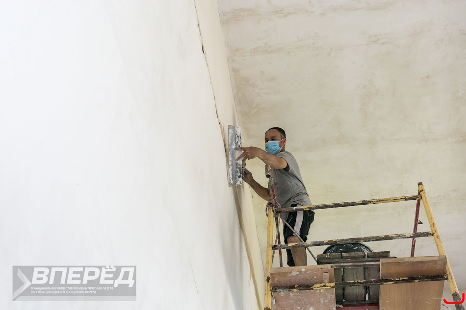 Посмотреть, как ведутся работы, на объект приехали глава округа Михаил Токарев и начальник управления образования Ольга Дударева.