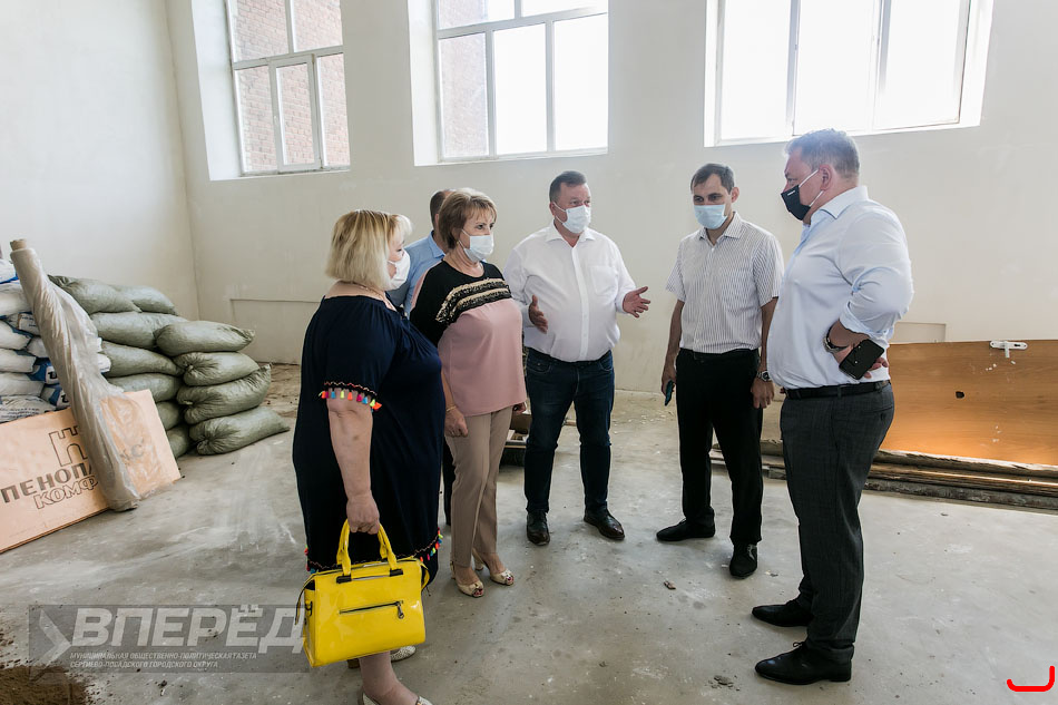 Посмотреть, как ведутся работы, на объект приехали глава округа Михаил Токарев и начальник управления образования Ольга Дударева.