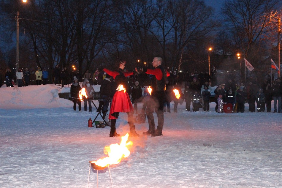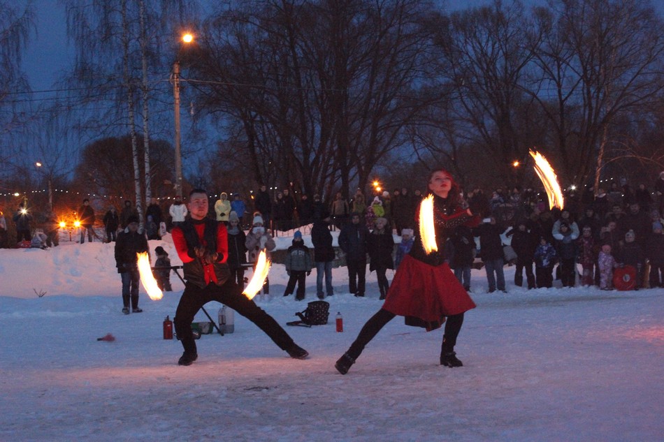 После заката на лёд вышли укротители огня, опасную стихию они превратили в зрелищное шоу. Сразу после фаершоу на протяжении почти четырёх минут небо озарял салют из 250 залпов.