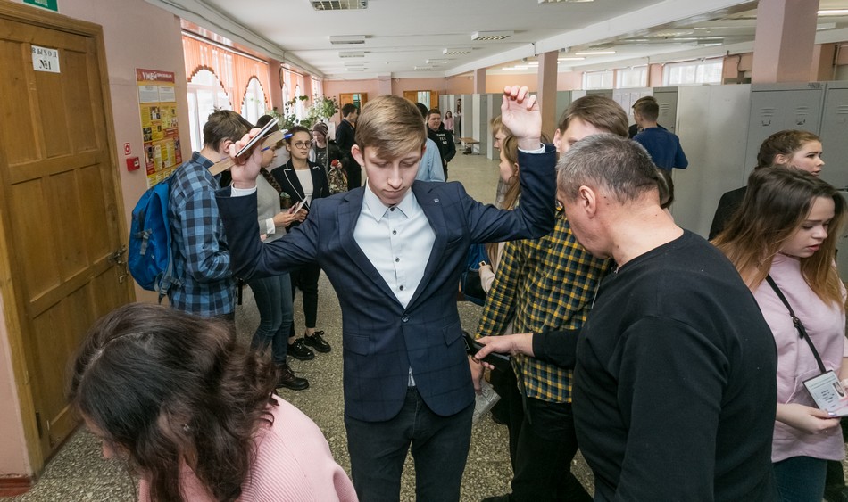 На первом этаже перед входом на лестницу собрались одиннадцатиклассники из Пересвета школы №8, Краснозаводской школы № 7, из Мишутино и школы № 11. Хоть экзамен и пробный, а нервничали ребята по-настоящему.
