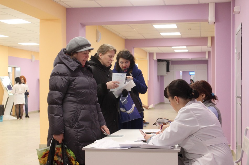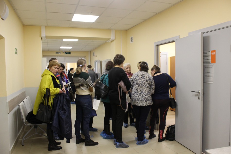 Уже к 9 часам утра, по словам медицинского персонала в поликлинику Районной больницы проверить здоровье пришло больше 90 пациентов. На первом этаже сергиевопосадцы предъявляли паспорт и отправлялись на второй. Здесь показывали медицинский полис, получали бумаги с маршрутом диспансеризации. Самые большие очереди были на четвёртом этаже у кабинетов, где сдавали анализ крови и ЭКГ.