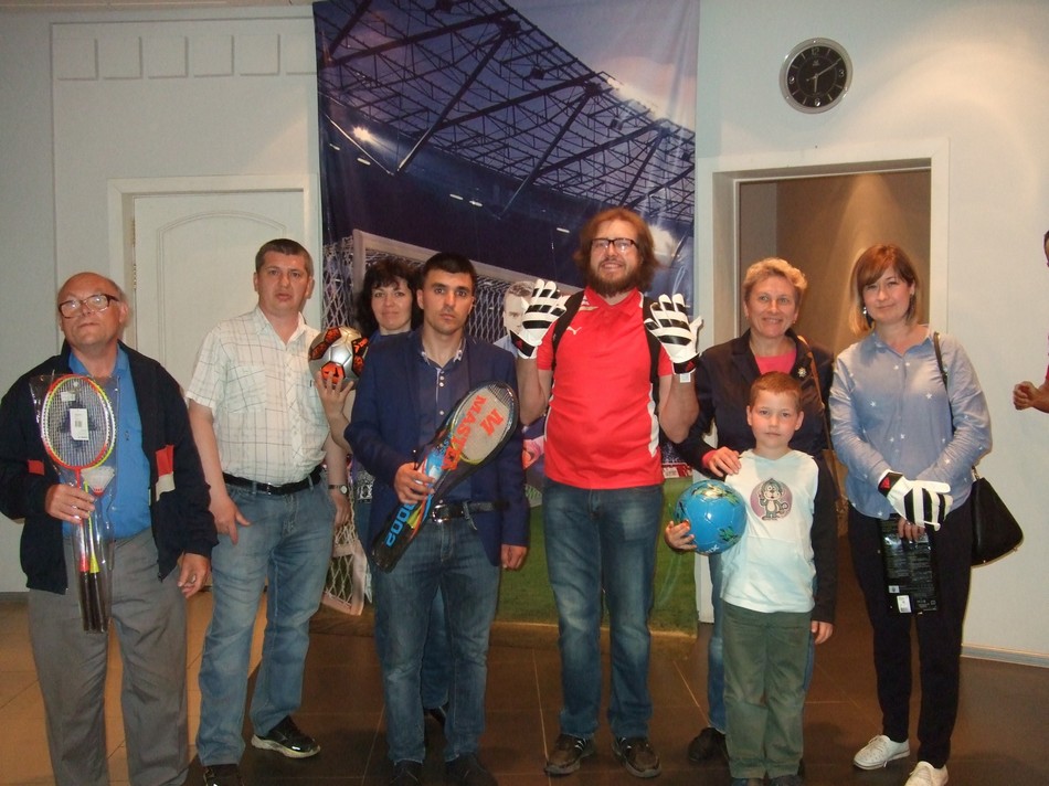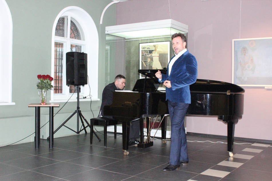 В главном корпусе музея вечер начался с конкурсной программы для всей семьи «Путешествие в страну Футболию», напомним, что с 18 апреля здесь проходит выставка к чемпионату Мира по футболу «Мы верим твёрдо в героев спорта». Вечером на втором этаже среди спортивных экспонатов выступали артисты музыкального театра «Геликон-оперы»: солист Дмитрий Хромов и концертмейстер Сергей Семёнов.