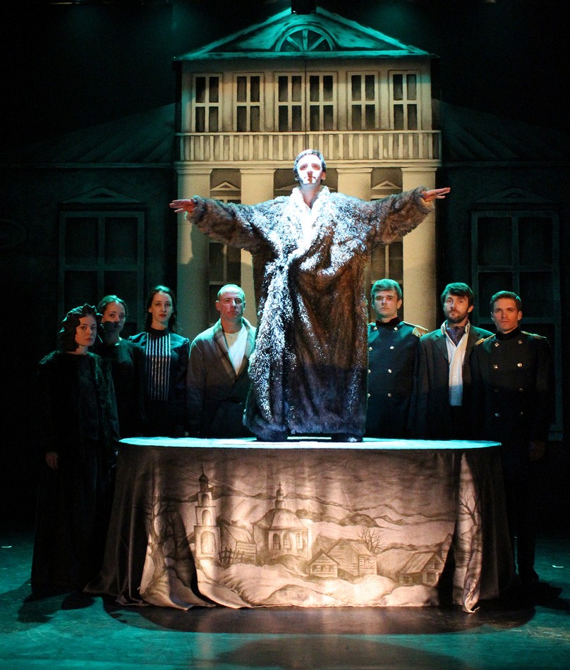 2 часа 30 минут крайне полезного морального испытания для зрителя… А актёрскому составу каково: пропускать через себя литературный аналог картины «Крик» Эдварда Мунка десятки раз? Невольно поверишь, что которые роли и образы отнимают у артиста несколько лет жизни своей надрывностью. Основной удар на себя приняла, безусловно, Марина Петухова, полностью перевоплотившись в упыреватую сквалыжную старуху Головлёву, на лице которой не промелькнуло ни единой позитивной эмоции. Её приветствовали криком «Браво!» Сам Иудушка – он же Сергей Недугов – получился злодеем ярким и концентрированным, но не приторным. Тем и подкупил. Интересно интерпретирован образ покойного отца семейства – Владимира Головлёва. Владимир Шелехин в духе Петра Мамонова нагонял атмосферу бесноватости – отнюдь не лишнюю.