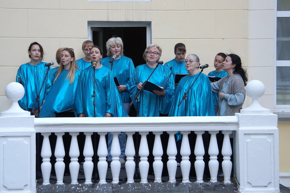 Такую необычную идею предложила заведующая отделом культурно-досуговой работы Дворца Лариса Серова. Первый концерт состоялся в начале июня, и с того времени для сергиевопосадцев спели студия «Резонанс», народный коллектив «Рябинушка», хоры под управлением Галины Щербины и Алексея Кузнецова, а вчера выступала Светлана Цывкина и её коллеги-барды.