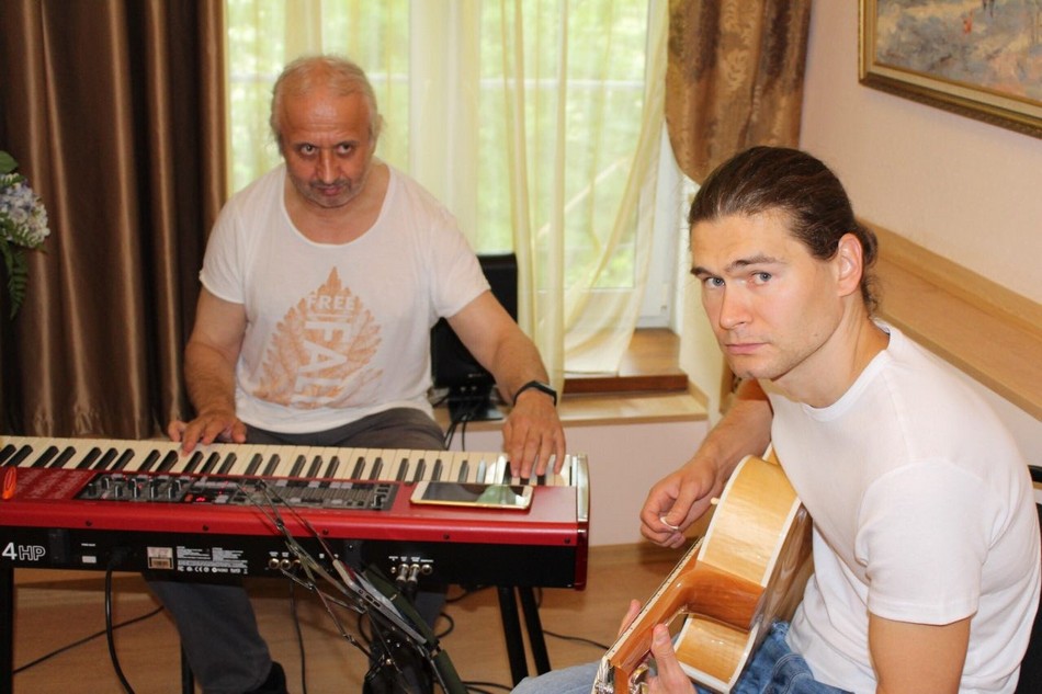 Выставка сопровождалась музыкальным оформлением, за электропиано был Игорь Островский, а на гитаре играл Иван Стручков.