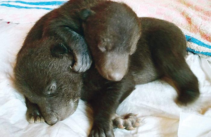 «Глядя на эти два копошащихся крошечных комочка, не догадаешься, что в коробке медвежата. Я не сразу поверил своим глазам, — рассказал Владимир Жидкин на страницах своей газеты. — Поздно вечером пошёл выносить мусор, услышал из коробки странное рычание. По внешнему виду — щенки крупной собаки. Подумал сначала, что дворняги. Только потом понял, что новорождённые собаки так не рычат. Да и лапы у них отличаются большими «пальцами» с когтями».