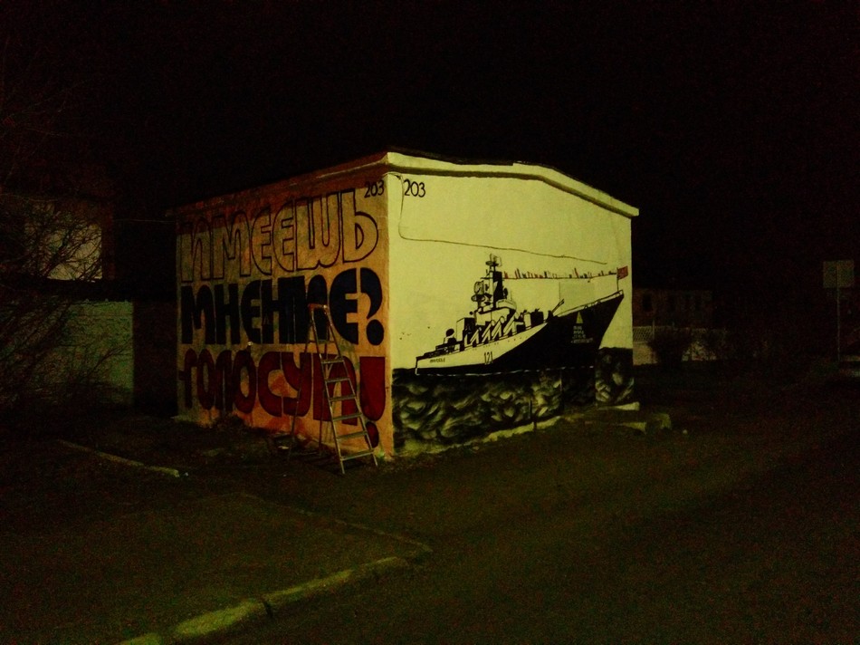 Лучше всего публика принимала их в Хабаровске, Казани и Новосибирске. «Для каждого города мы придумывали свой сюжет. Во Владивостоке, например, делали рисунок с амурским леопардом. В общем, это были патриотические граффити, которые будут актуальными и после выборов», — говорит Игорь Федосенко.