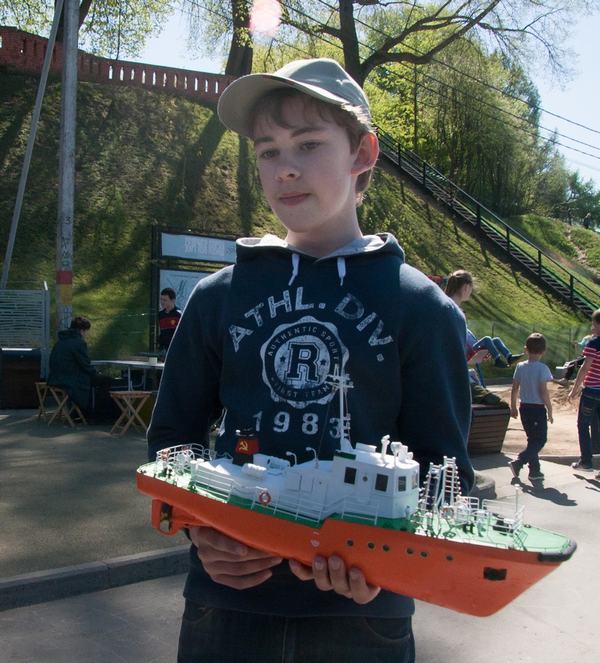 «Во всероссийских соревнованиях по судомоделизму участвовал с ходовой моделью. Выручила стендовая оценка за оформление модели, – рассказывает судомоделист Никита Колбасов. – Катер делал не я. Поскольку это очень серьезный уровень модели, участвовал лишь при её изготовлении – делал шпигаты, якорный стопор, лампы».