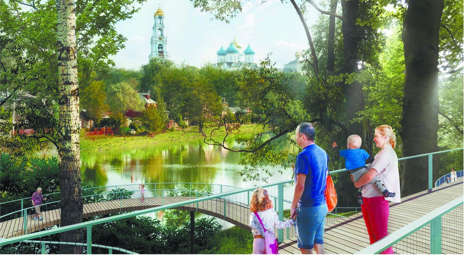 Законченная в 2018-м пешеходная зона «Дорога к храму» уже успела полюбиться не только местным жителям, но и гостям Сергиева Посада. Несколько сотен метров от проспекта Красной Армии возле здания администрации до храма Петра и Павла стали хитом благоустройства федерального масштаба. Начинается всё с огромной шашечной доски, за которой следует арочный каскад, ведущий непосредственно к культовому сооружению, рядом с которым расположена не то пушкинская золотая рыбка, не то чудо-юдо-рыба кит — не суть важно, зато эффектно. На стадии разработки проект оценивался в 45 миллионов рублей.