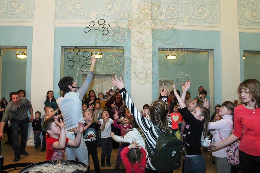 Главные хозяева сегодняшнего праздника — дети. Для них устроили большую развлекательную программу, шоу мыльных пузырей, выступления дрессированных собак кинологического клуба «Элита». Здесь были и яркие фотозоны, ради этого в фойе Дворца даже вкатили два мотоцикла. Ребята развлекались на игровых площадках и общались с ростовыми куклами.