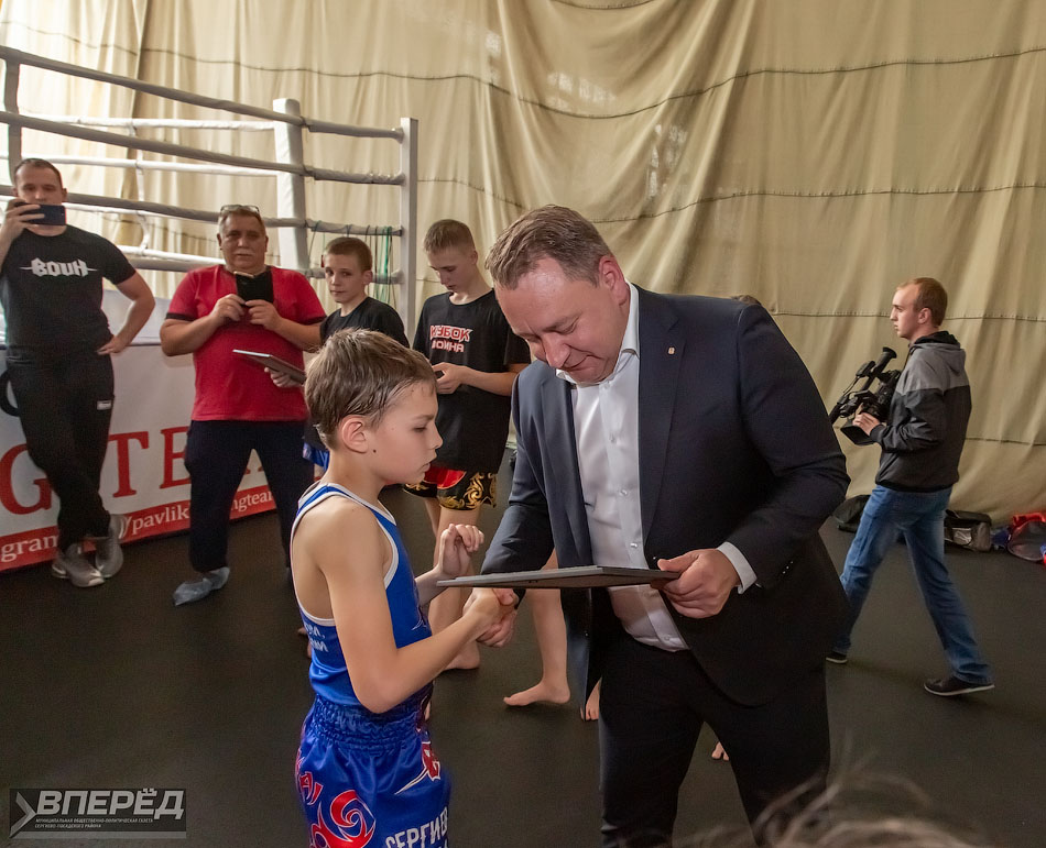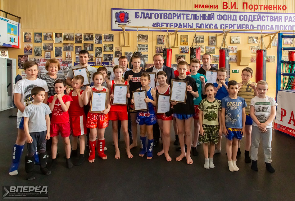 Глава Сергиево-Посадского района Михаил Токарев вручил молодым спортсменам и тренерам из клуба тайского бокса «Воин» официальные благодарности за спортивные успехи.