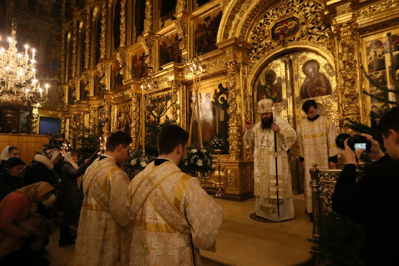 Наместник Лавры епископ Сергиево-Посадский Парамон проводит рождественскую службу в Успенском храме — первую подобную после назначения на этот пост.