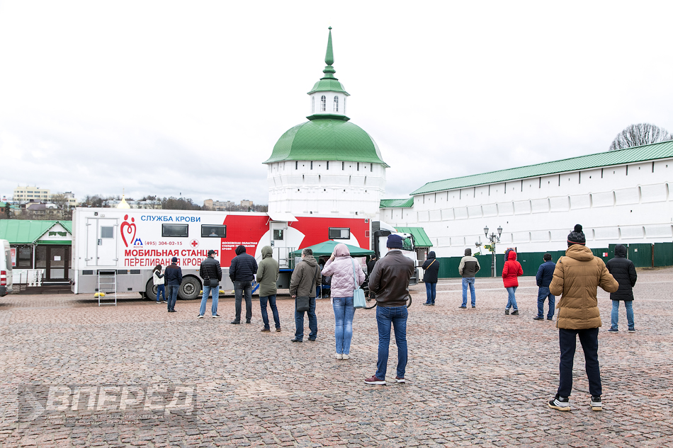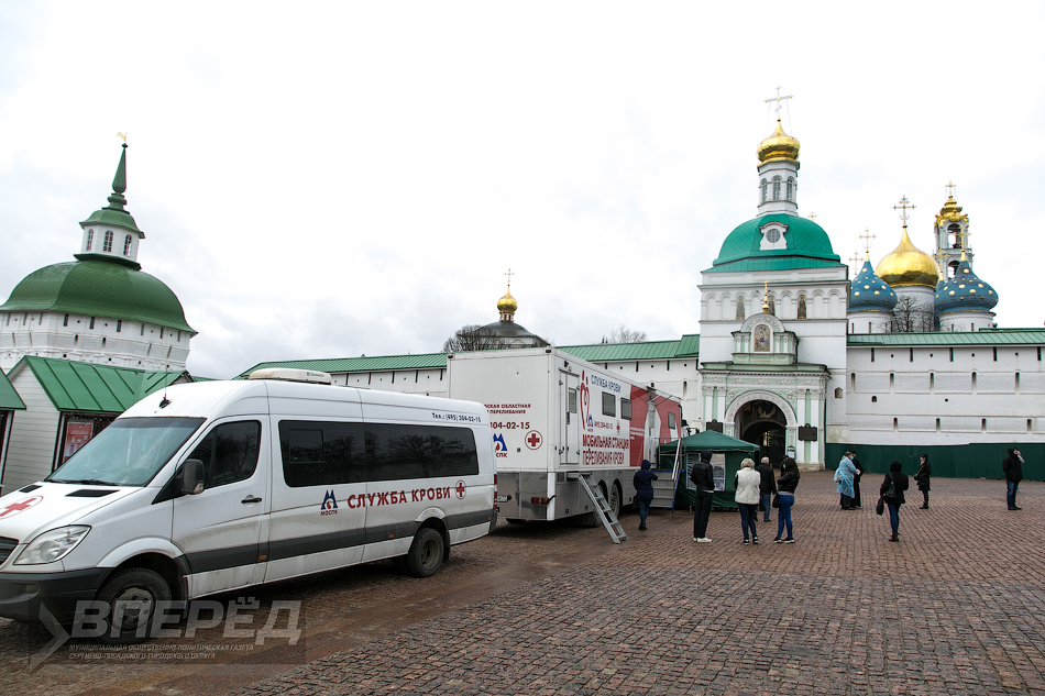 Мобильная станция переливания крови Московской области 16 апреля, приехала на Красногорскую площадь. 49 доноров заранее записались: каждый к определённому времени, чтобы не создавать очередь. Участие в акции приняли и монахи Троице-Сергиева монастыря.