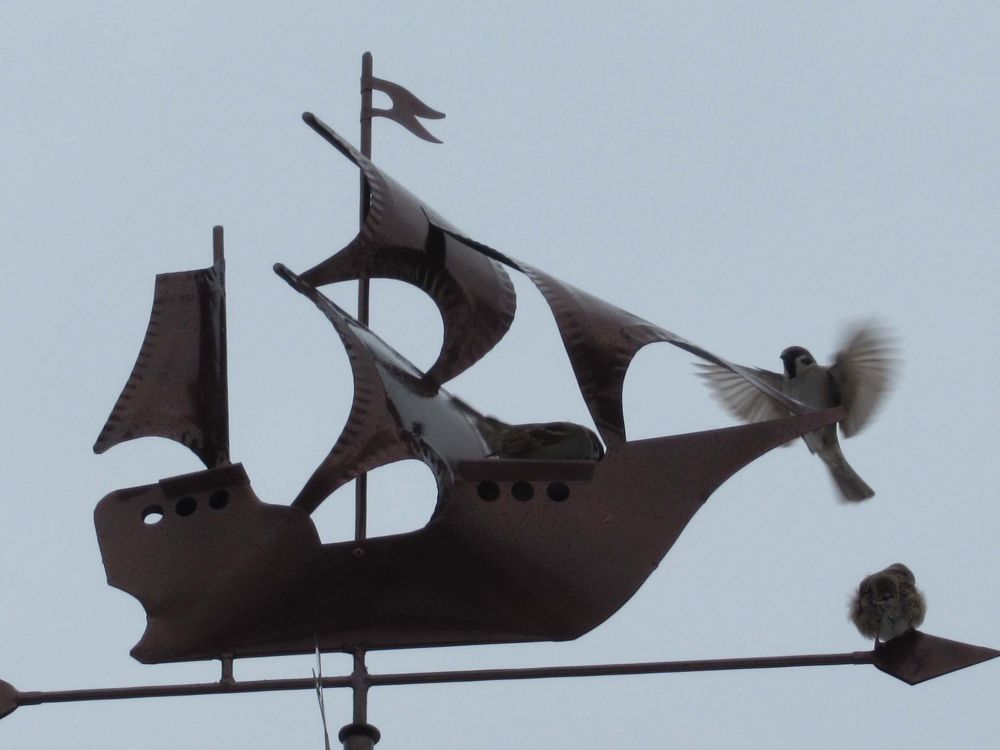 Снимка самолёта над крышами адлерских высоток в архиве не нашлось, но есть другой — птица настоящая зависает у флюгера на крыше его дома. Ждать этот момента пришлось минут сорок.