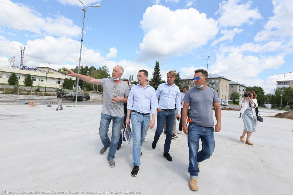 Во время визита министра благоустройства Подмосковья Михаила Хайкина 10 июля готовность работ оценена на 65%. Сейчас ведутся работы по архбетону, выполнено бетонирование основания под памятник Пухову и других малых архитектурных форм, ведутся монтажные работы по установке опор освещения.