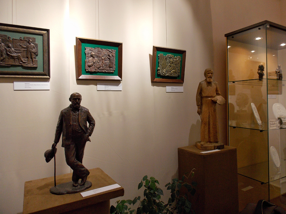 «Это тема близкая для нашего города, здесь покоятся мощи родителей Сергия Радонежского, поэтому не сделать было грешно. Работа создавалась долго, первые её эскизы я сделал в прошлом веке», — поясняет Юрий Павлович. Для Абрамцевского музея мастер с удовольствием создавал работы на тему писателей и художников, связанных с усадьбой.