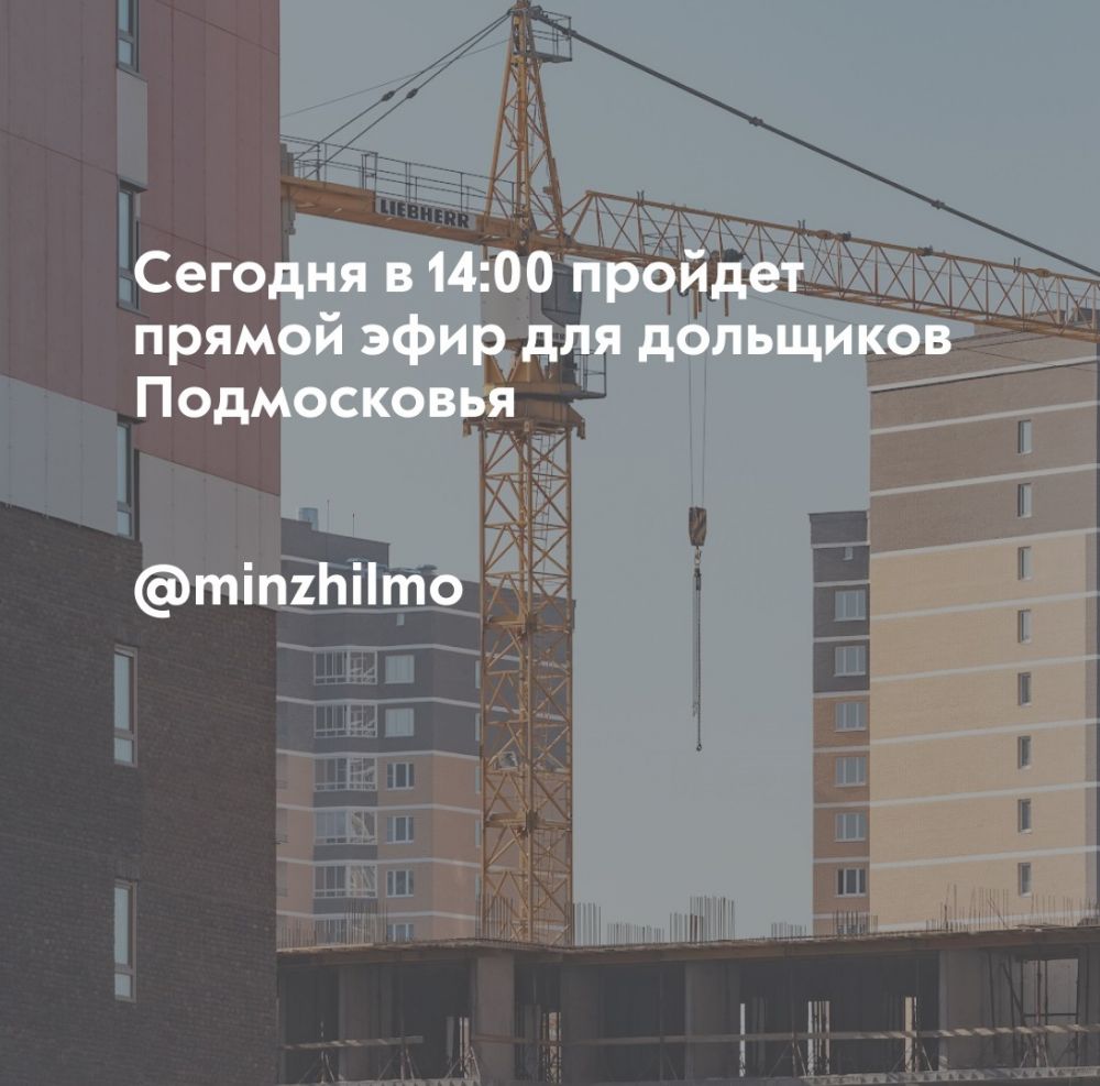 Министерство жилищной политики Московской области совместно с региональным фондом дольщиков сегодня, 9 октября, в 14:00 проведут прямой эфир по проблемным жилым объектам.