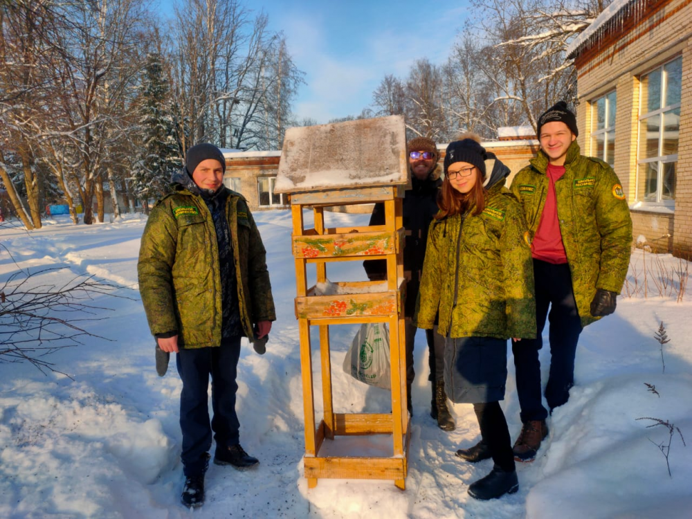 Сотрудники Сергиево-Посадского филиала ГКУ МО «Мособллес» совместно с учащимися школьного лесничества приняли участие в акции «Покормите птиц зимой».