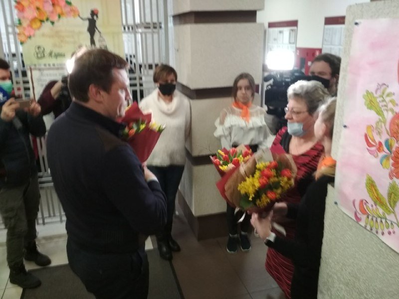 В начале встречи женщин поздравили с предстоящим праздником 8 марта. Директору Ирине Горшковой и педагогам бывший ученик вручил букеты цветов.