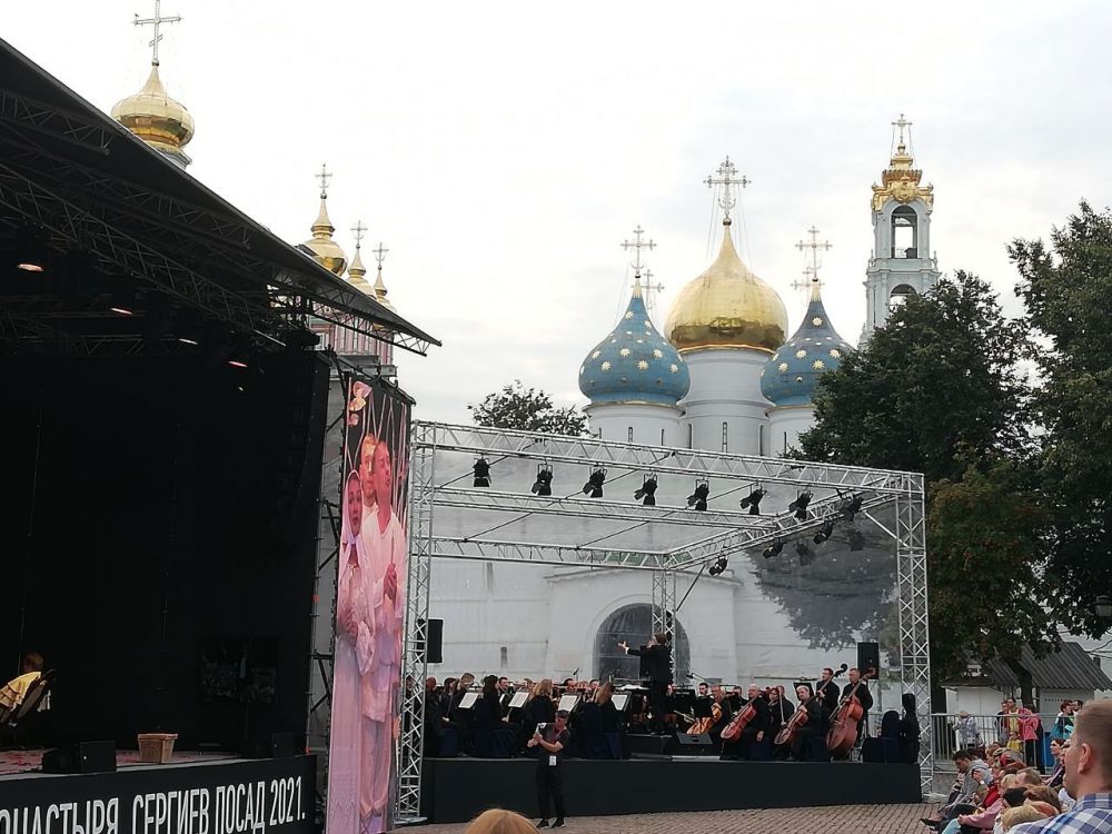 Cегодня у стен Троице-Сергиевой лавры звучала опера. На открытой сцене — «Евгений Онегин» в исполнении артистов театра «Геликон-Опера».