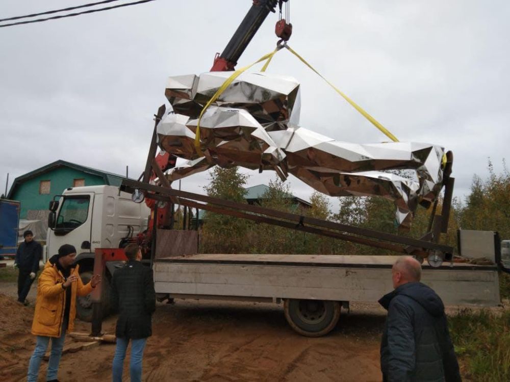 — Да, меня заметили, стали поступать заказы с более сложными задачами. Скульптура должна была быть всепогодной, вандалоустойчивой, часто зеркальной. Я сначала пробовал делать какие-то прочные каркасы, но в итоге пришёл к изготовлению основы из металла и облицовывал либо зеркальными листами, либо цветным пластиком. Два года подряд для украшения Тверской улицы в Москве на Новый год наша мастерская изготавливала фигуры из металла, покрытые зеркальными и цветными панелями. Они могли прослужить и два года, но облицовочный материал меня не устраивал. Так я дошёл до нержавеющей стали. Был заказ на арт-объекты для ландшафтного парка «Митино», серия фигур — волк, лиса и медведь. Я их делал из зеркальной нержавейки. Это был мой первый опыт из нержавейки, я тогда понял, что это идеальный материал для тех задач, которые стоят.