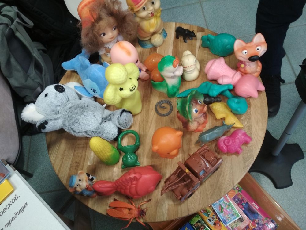 Много местных мастеров — они представили трикотаж и работы из дерева. И конечно, игрушки, в том числе те, благодаря которым Загорск-Посад стал столицей потешного царства, — от времён резных солдатиков до образцов учреждённого в городе НИИ игрушки.