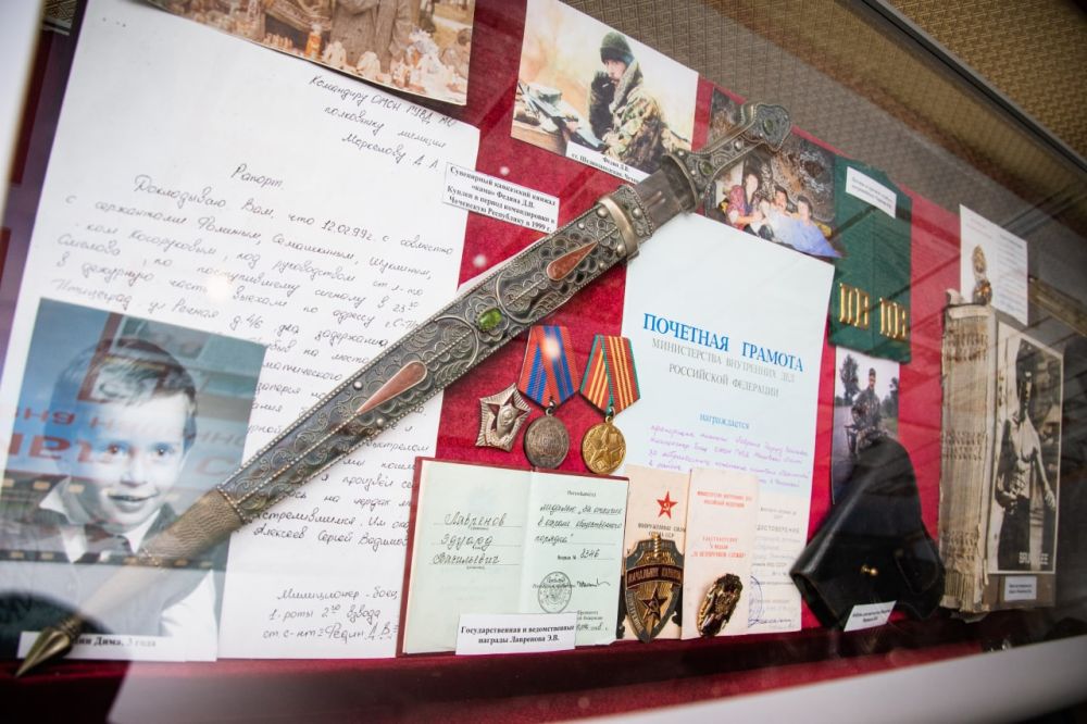 «Музей тематически разделён на два зала: первый посвящён будням и командировкам на территориях Московской области и Северного Кавказа, второй – Зал памяти, посвящён событиям 2 марта 2000 года, когда 17 человек погибли вместе с первым командиром, полковником Дмитрием Маркеловым», — рассказал Владислав Ершов.