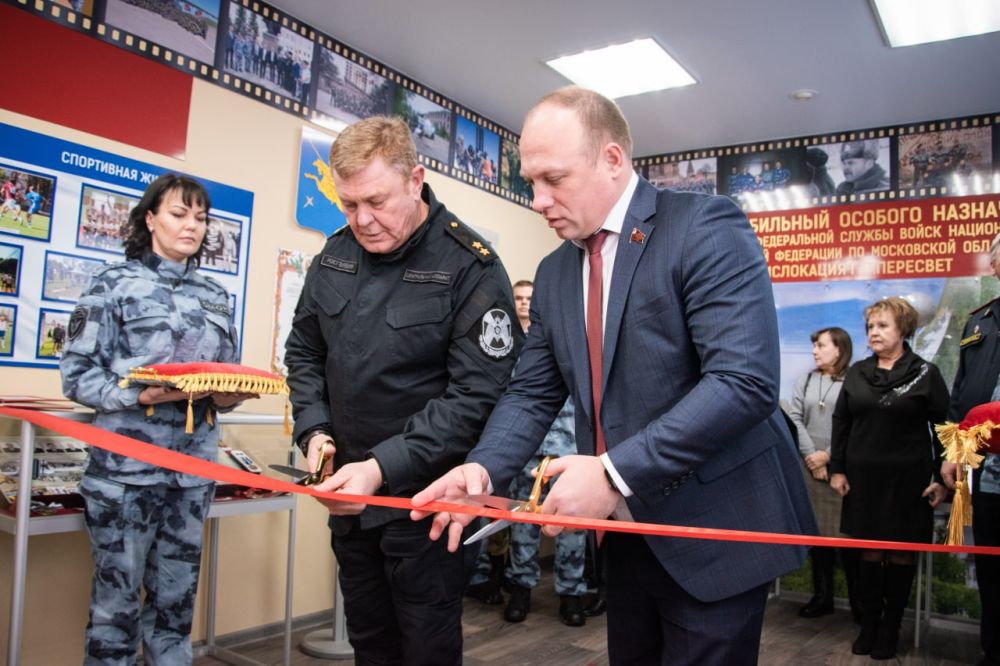 Церемония открытия началась с возложения цветов к памятнику погибшим в 2000 году ОМОНовцам, который расположен на территории отряда в Пересвете. Бойцов помянули и в часовне. Право торжественно перерезать ленточку на открытии музея было предоставлено депутату Мособлдумы Олегу Гаджиеву и начальнику управления подразделений полиции специального назначения Росгвардии, генерал-лейтенанту Владиславу Ершову.