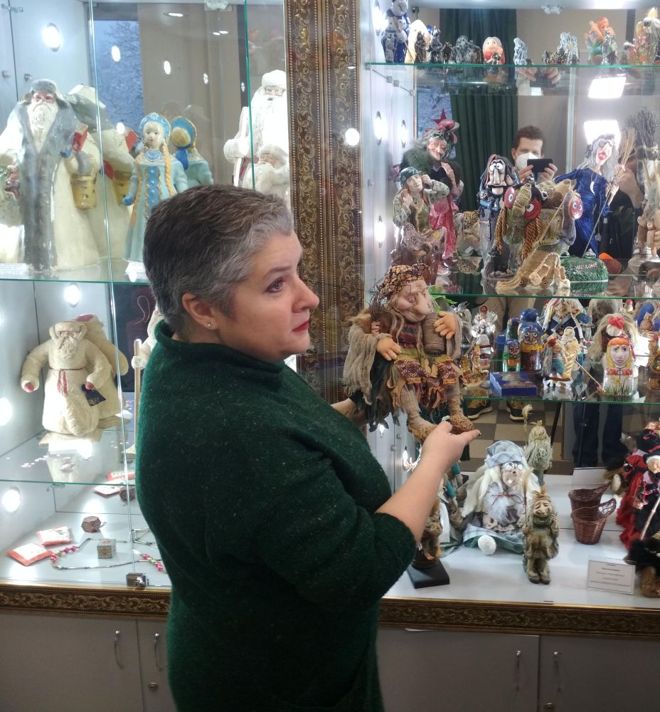 Ольга Ильина из Сергиева Посада — единственная из участвующих в новой выставке, кто делает игрушки сама. Её пример удивителен: у неё нет больших пальцев рук, но это не мешает ей получать призы за лицевое орнаментальное шитьё, которому училась в Московской духовной академии. Меньше года назад увлеклась игрушками, каждая из которых изображает ребёнка. Лица прописаны в мельчайших подробностях, одежда сделана из ваты, и их корпус Ольга также делает сама, заливая формы, каждая из которых неповторима.