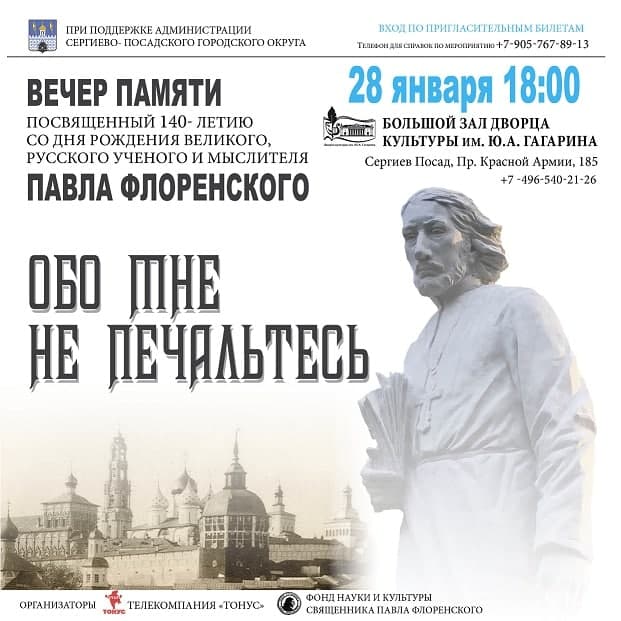 Вечер памяти Павла Флоренского пройдёт 28 января в ДК им. Ю.А. Гагарина