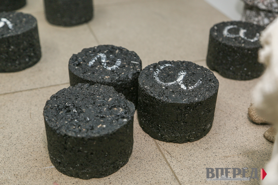 По словам начальника испытательной лаборатории Елены Косаренковой, из каждой партии материала отбирают пробы, которые затем испытывают на соответствие всем характеристикам ГОСТ: изучают зерновой состав и фактуру, формуют, прессуют и проводят другие манипуляции. Кроме того, в лаборатории готовят образец, с которым потом сравнивают вырубку уже с дорожного полотна. Третью проверку качества готовой, уже уложенной асфальтовой смеси, проводит независимая лаборатория во время приёмки работ.