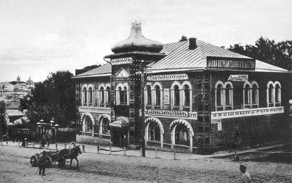 В конце XIX века на стыке двух улиц — 1-й Рыбной и Московской (ныне проспект Красной Армии) — был построен большой кирпичный двухэтажный дом, в котором разместилось «Общество взаимопомощи кустарей». Дом этот стал известен горожанам ещё и тем, что в нём в 1910 году открыли кинотеатр «Модерн» (синематограф). В его зале, расположенном на втором этаже, показывали немые фильмы, которые сопровождались фортепьянной игрой тапёра.