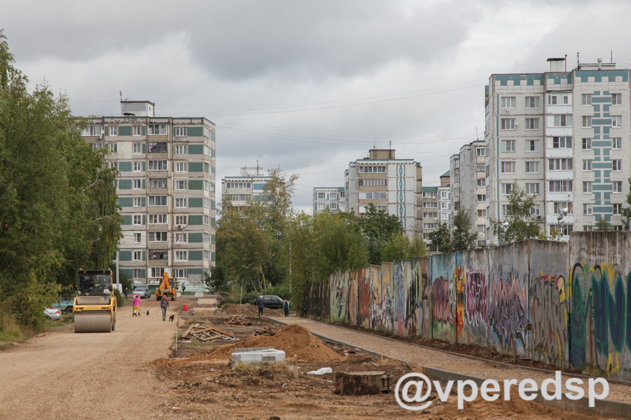Раньше этот проход между домами и улицей-то трудно было назвать — грязная, неухоженная грунтовка. А сейчас здесь уже угадывается проспект, шириной порядка шести метров. Предполагается, что улицу будут использовать не только для проезда, но и для парковки.