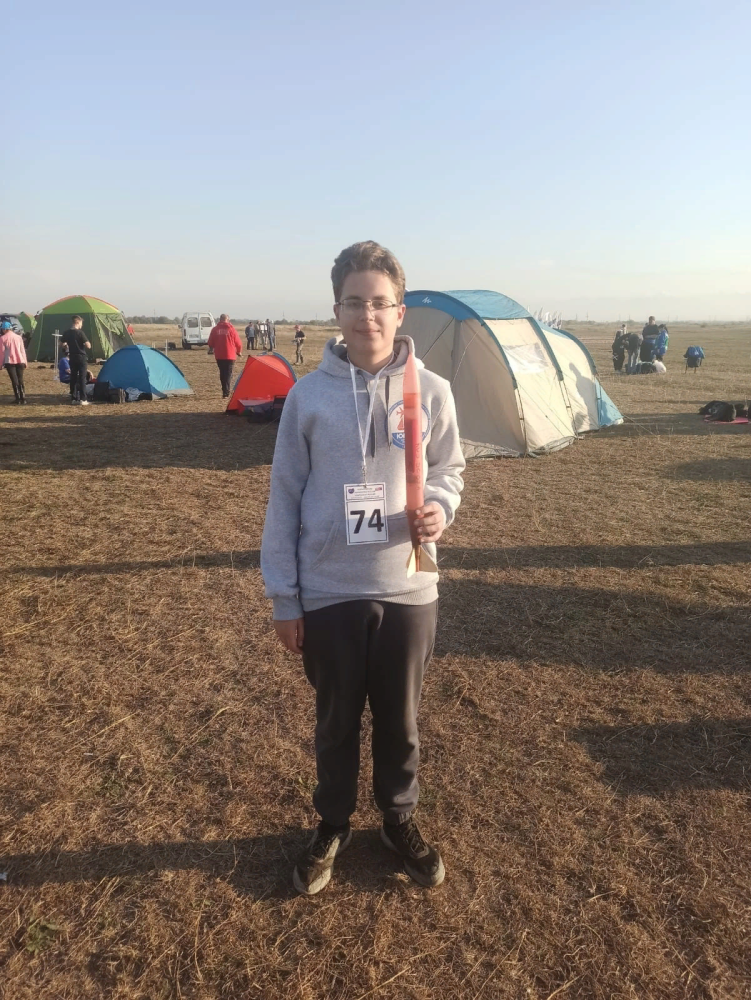 Спортсмен занял первое место в соревнованиях на продолжительность полёта ракет с лентой.