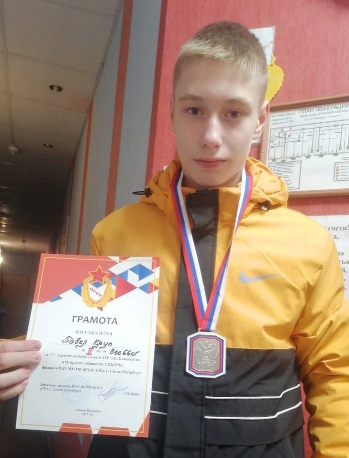Ещё один представитель СШ «Центр» Павел КРУЦ завоевал серебро в весе 66 кг и стал вторым на турнире, уступив сопернику из Екатеринбурга. Так держать!
