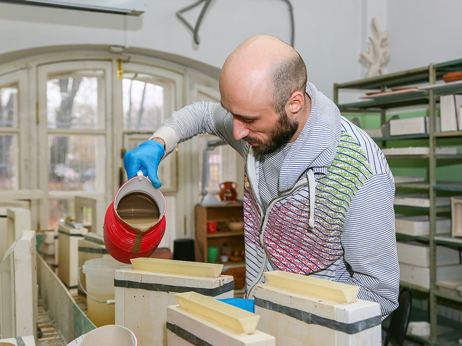 В мастерской несколько цехов: литейный, гончарный, цех обжига, а также ряд других помещений, где производится сушка и глазурование продукции
