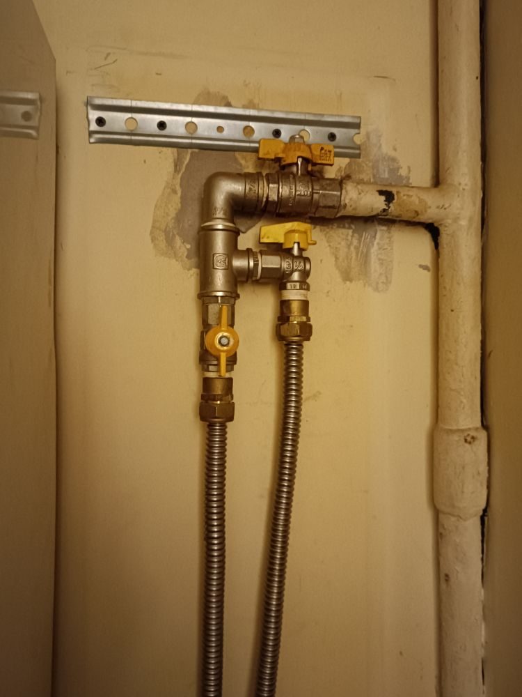 От крана до газового прибора должен идти гибкий шланг. На этом участке допускается только одно дополнительное резьбовое соединение. Сюда можно установить либо диэлектрическую вставку, либо клапан автоматического перекрытия газа, соединённый с датчиками загазованности.