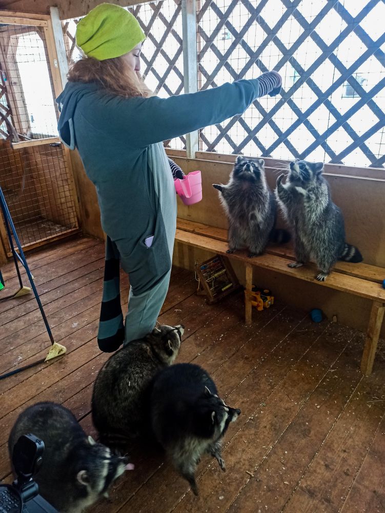 Случай с енотом, которого десантники ВДВ прихватили из херсонского зоопарка, внезапно подогрел интерес и к этим животным и в нашем округе. «Дом енота», расположенный в Хотькове, и так не испытывал недостатка в посетителях, а тут и вовсе начал лимитировать визиты. Из четырёх заявленных бригад журналистов пустили только нас. Тем более что зимой у зверьков пониженная активность, и лишний раз их стараются не тревожить.