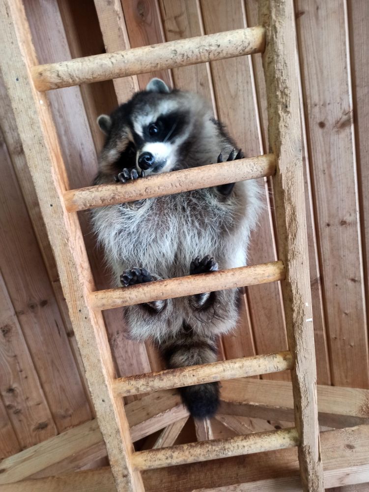 В одном вольере с Жорой его конкурент за внимание — енотиха Софа. Она с удовольствием идёт на ручки, ласковая и общительная, хотя пережила целую драму, — её подбросили в «Дом енота» в мешке из-под сахара.