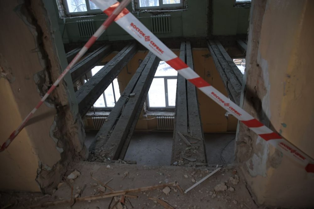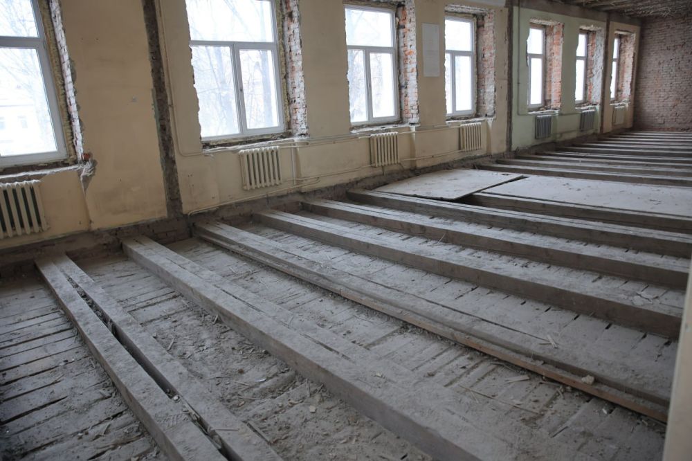 Деревянные перекрытия заменят на монолит, сейчас рабочие устанавливают подпорки, следующий этап – замена бруса на металлоконструкцию.