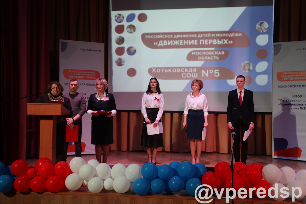 В школе №5 города Хотькова состоялось торжественное открытие первичного отделения Российского движения детей и молодёжи «Движение первых». 150 школьников дали клятву, присоединяясь к движению.