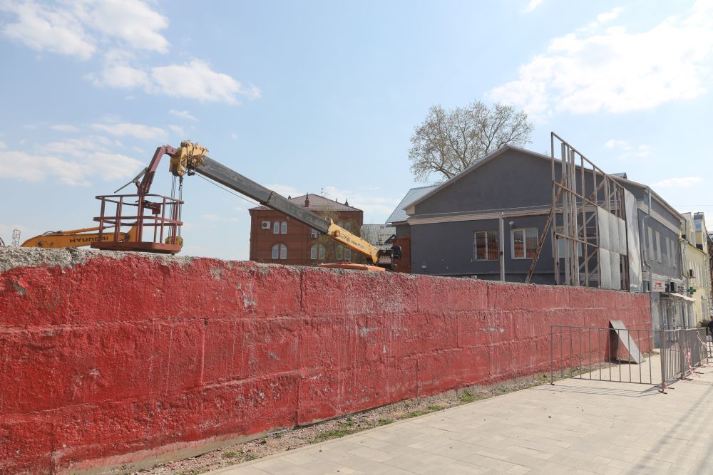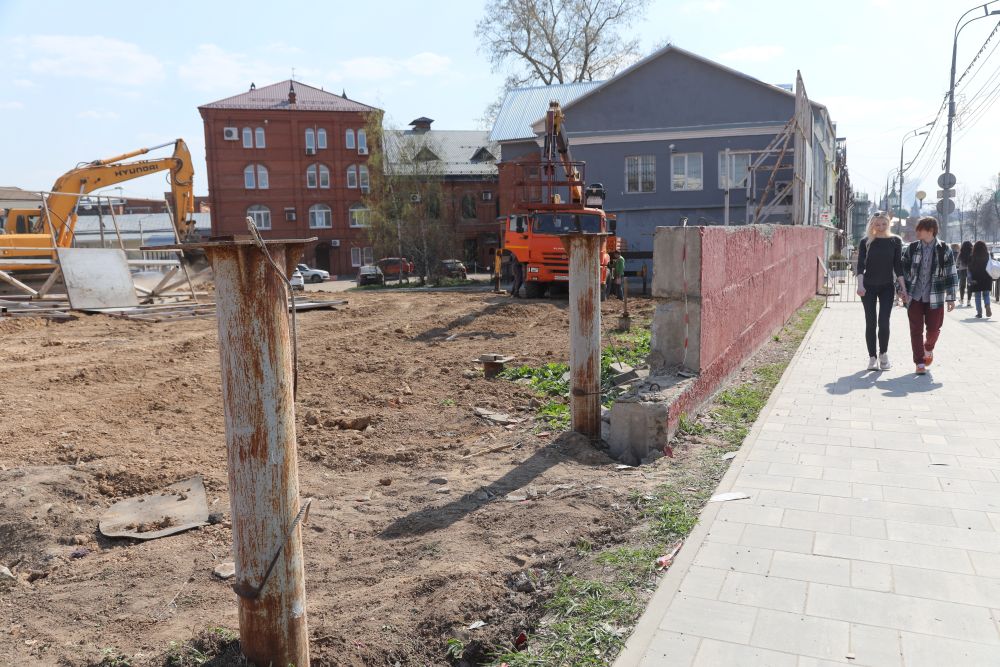 «Изначально нам предлагали оставить низкий бетонный парапет, но мы решили убрать всё «под ноль», до тротуара. Сделаем одну пешеходную дорожку, остальное пока засеем травкой. Заодно зашли в соседние здания, торцевые стенки которых тоже откроются внешнему взору с проспекта. Собственникам придётся оперативно привести их в порядок», — написал по итогам встречи в своём телеграм-канале Сергей Пахомов.