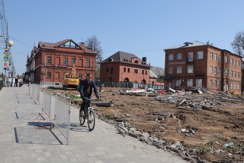 В центре Сергиева Посада демонтировали строительный забор у снесённого здания недостроенного фондохранилища. Работы начались на прошлой неделе в пятницу, во вторник убрали бетонный парапет.