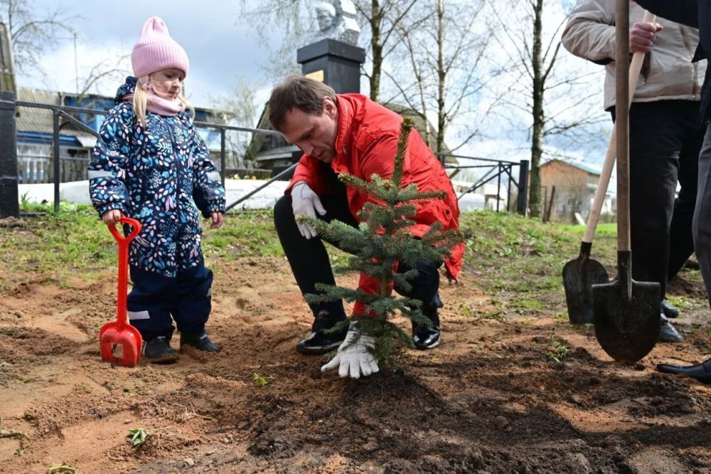 Участие в субботнике приняли Депутат Госдумы РФ, член Генерального совета «Единой России» Сергей ПАХОМОВ, временно исполняющий полномочия главы округа, член местного политсовета ЕР Дмитрий АКУЛОВ и первый заместитель председателя окружного Совета депутатов, руководитель фракции единороссов Константин НЕГУРИЦА . Они высадили вдоль мемориала молодые ели: в этой работе им помогали самые юные жители деревни. После завершения субботника к памятнику возложили красные гвоздики.